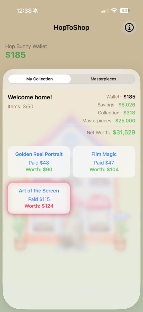 As you browse, you aren’t just filling a digital shelf; you are managing a growing estate. HopBunny helps you curate a personal collection of up to 50 items, but the ultimate goals are the village’s two elusive Masterpiece Items. These prestigious treasures—the Bunny Charm and the Bunny Statue—require true dedication. You must carefully manage your wallet and grow your savings account across multiple days to afford them, making the moment you finally bring one home feel like a monumental achievement.
