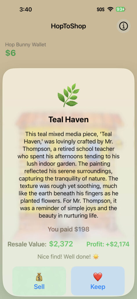 The brilliance of HopToShop lies in its infinite variety. Because the village shops are powered by Apple’s neural engine adapted for this cozy game , no two days in Hop Village are ever the same. Every morning, five local shops—from the cluttered charm of the Thrift Store to the curated elegance of the Art Gallery—refresh their shelves with entirely new finds.